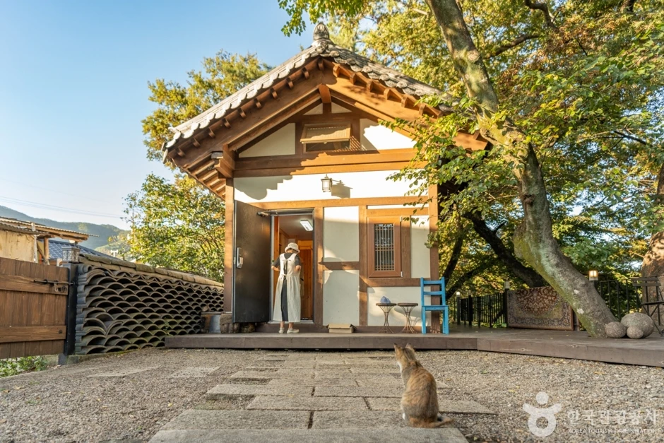 가배원덕동문화마을 안에 있는 세월이 묻은 고택과 유형문화재, 울창한 소나무 숲에 숨겨진 명소, 한옥 카페 ‘가배원’에 들어서면 먼저 사랑스러운 고양이들이 눈인사로 맞아준다.
